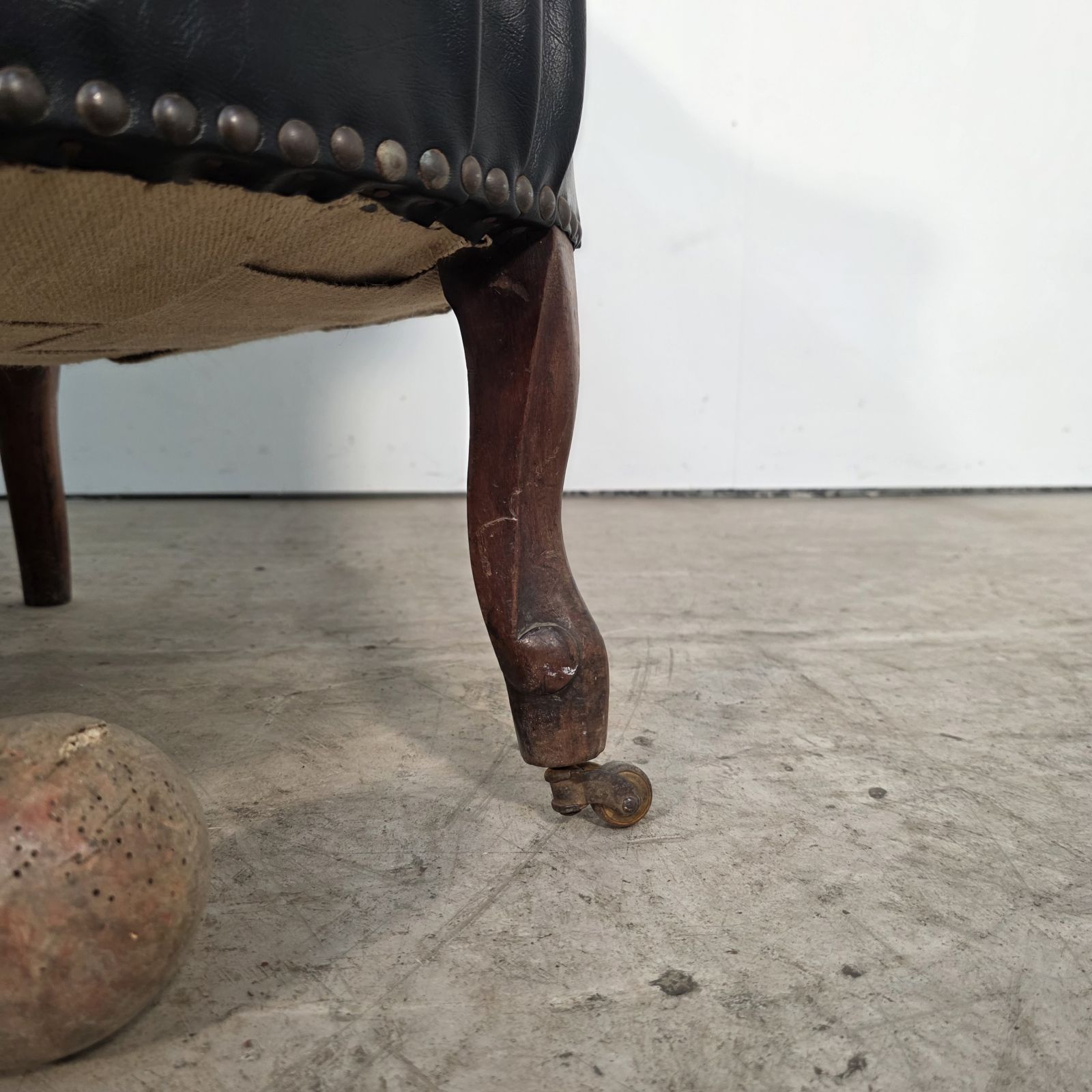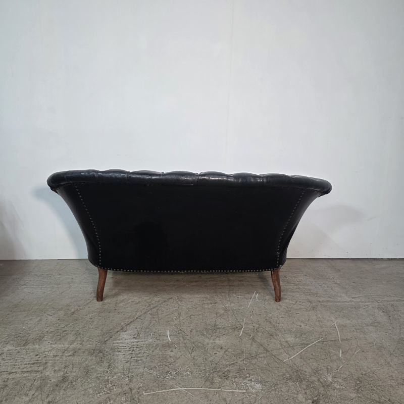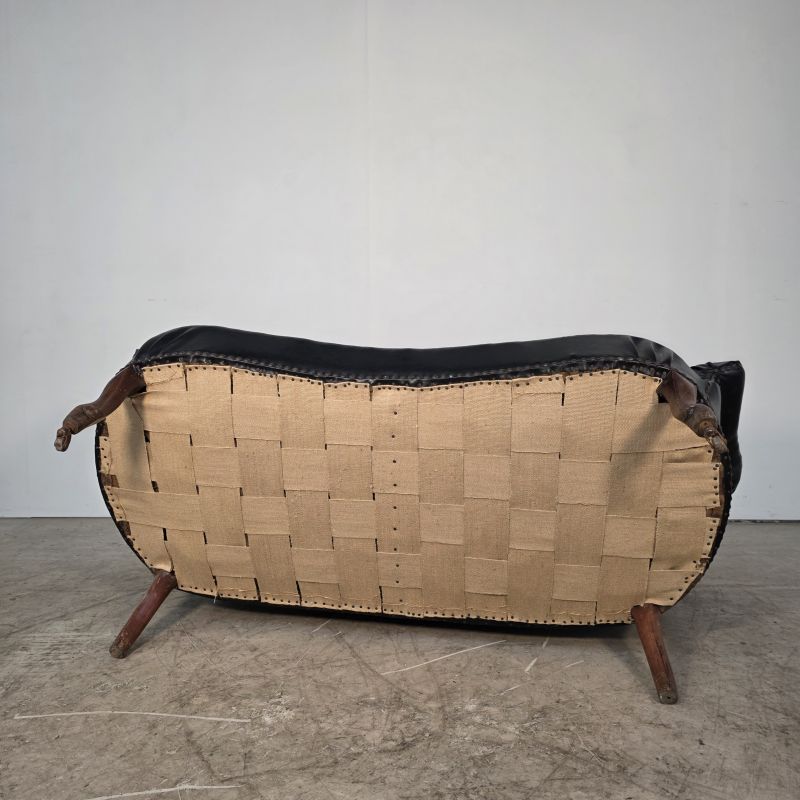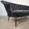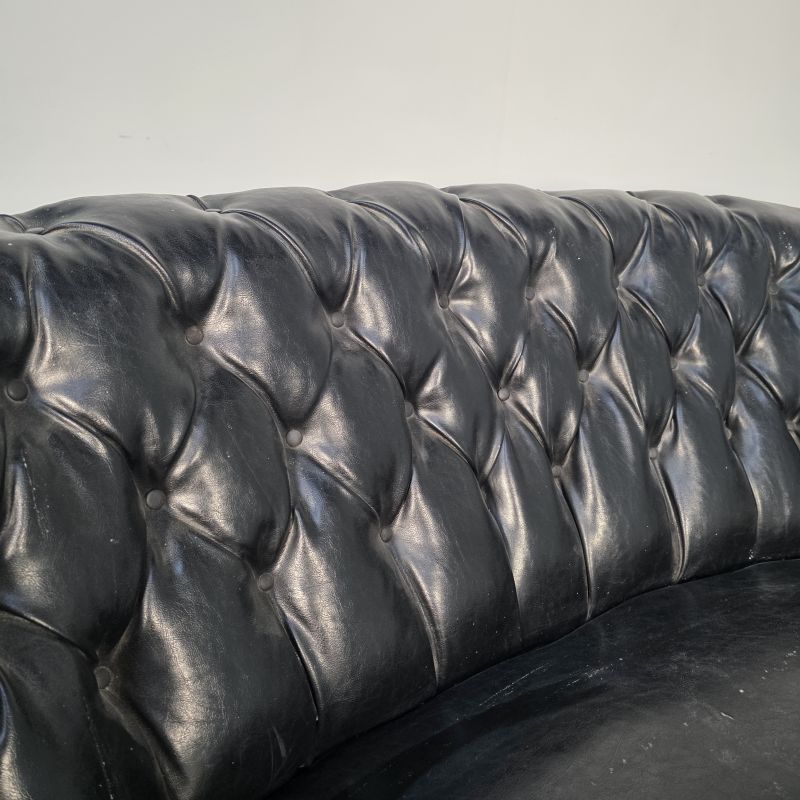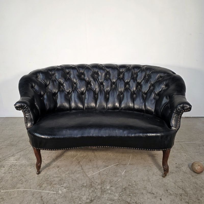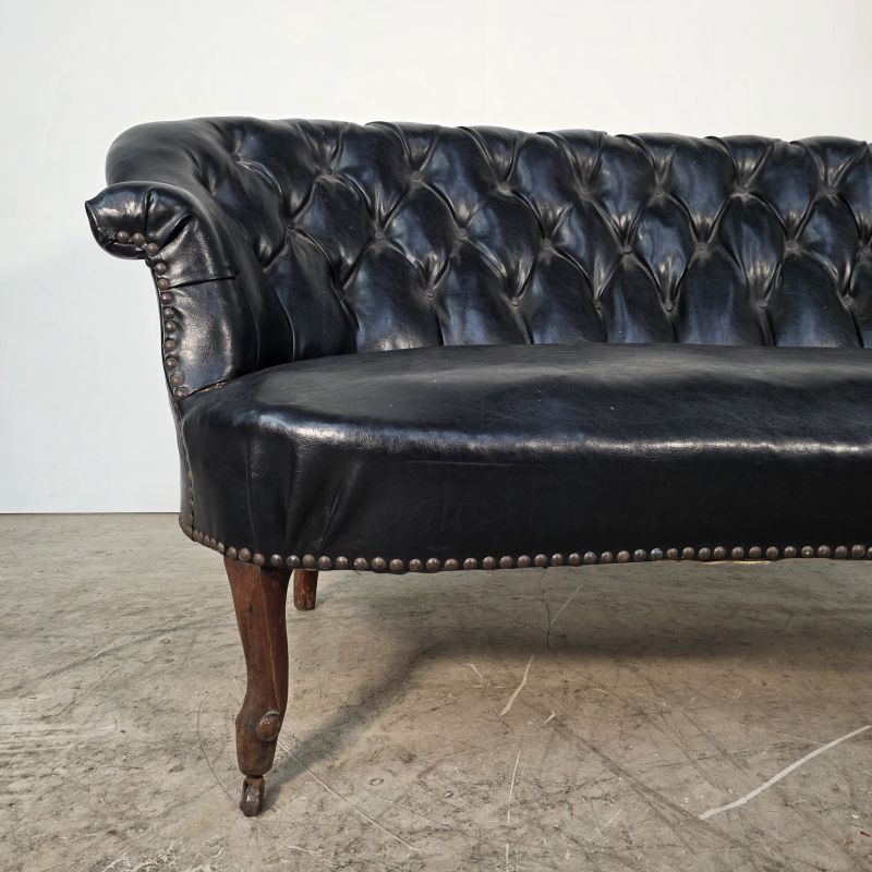 Curved Napoleon III black moleskin sofa