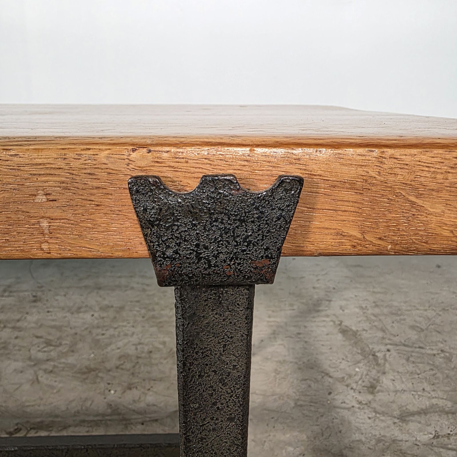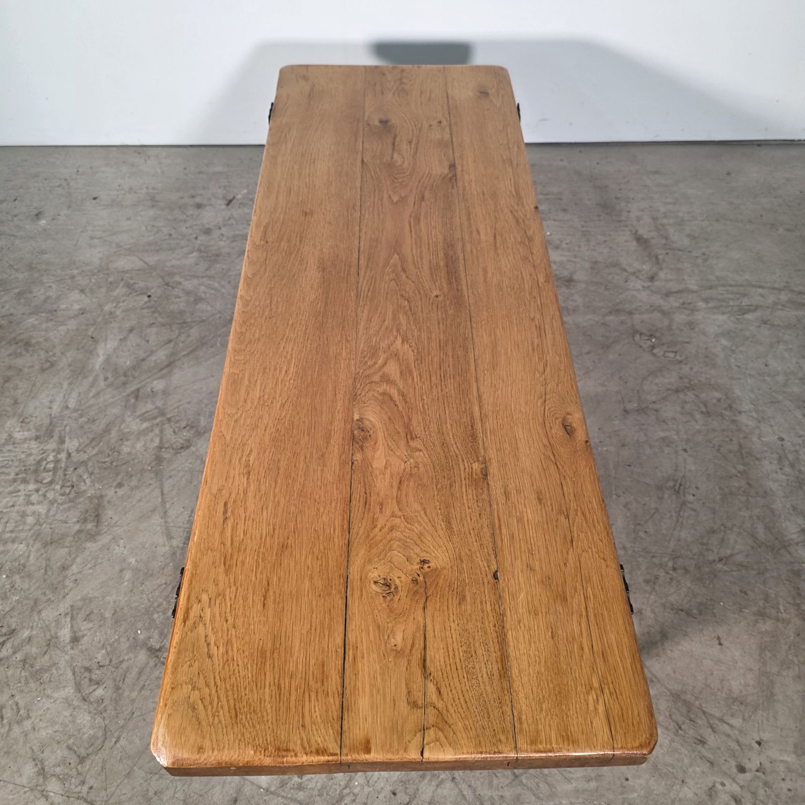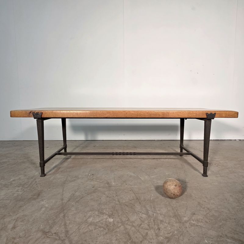 Jolie table basse en chêne et fer battu