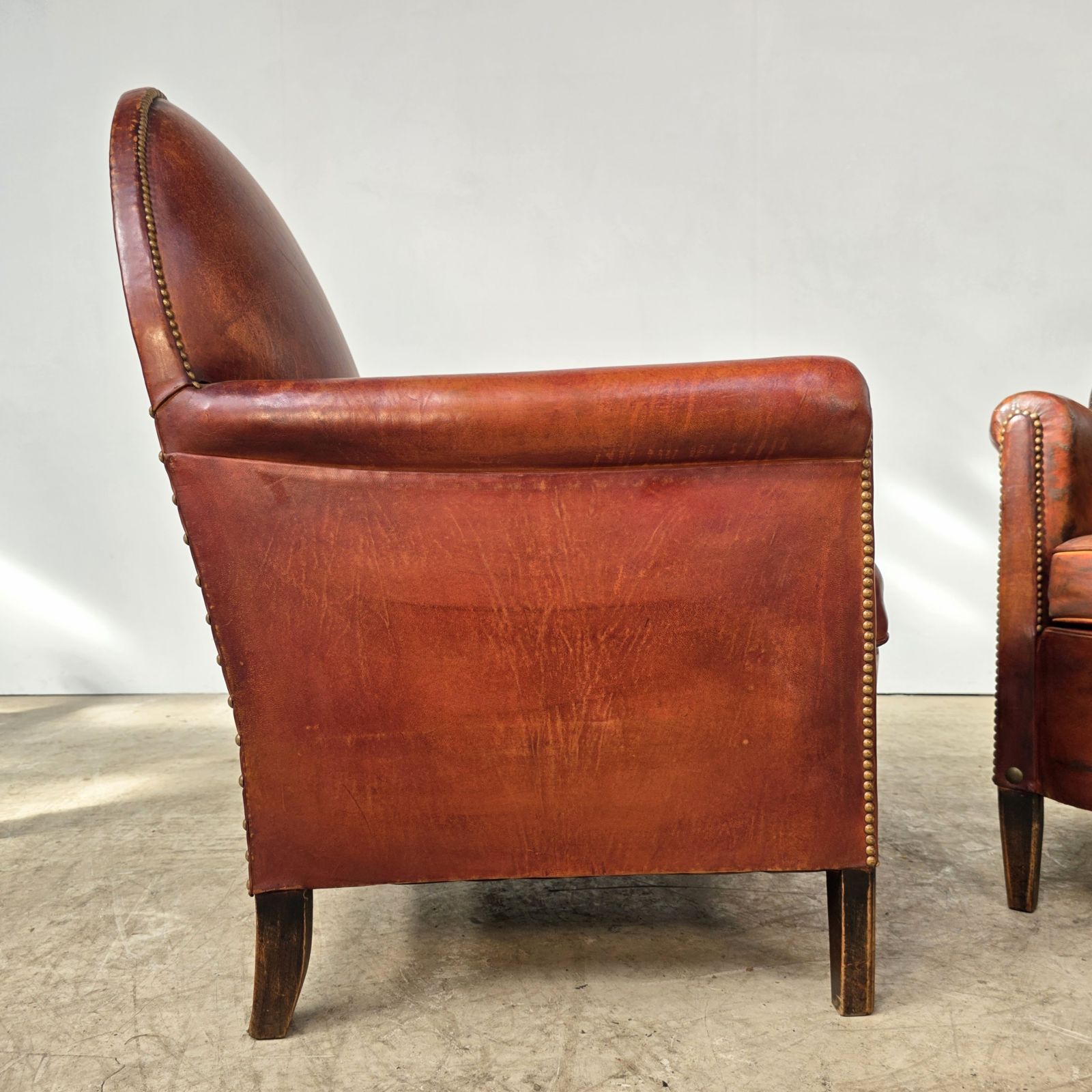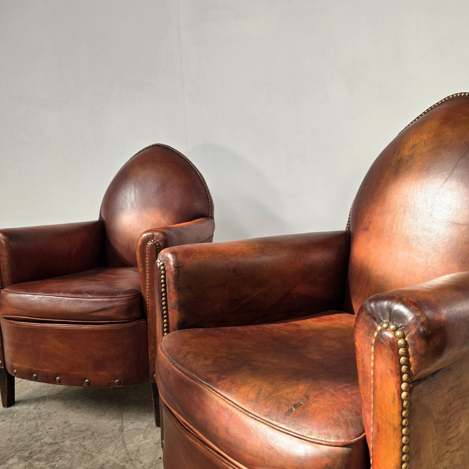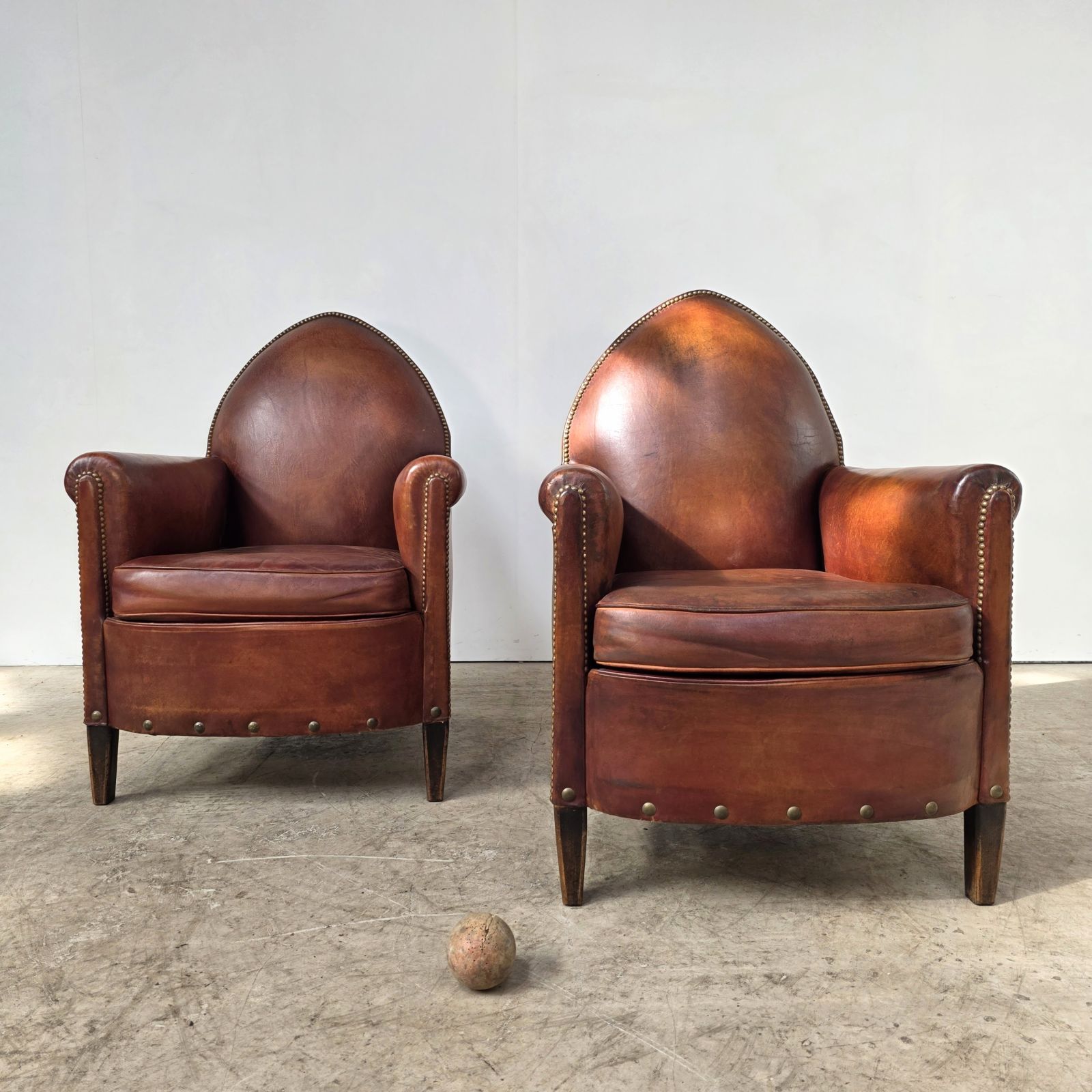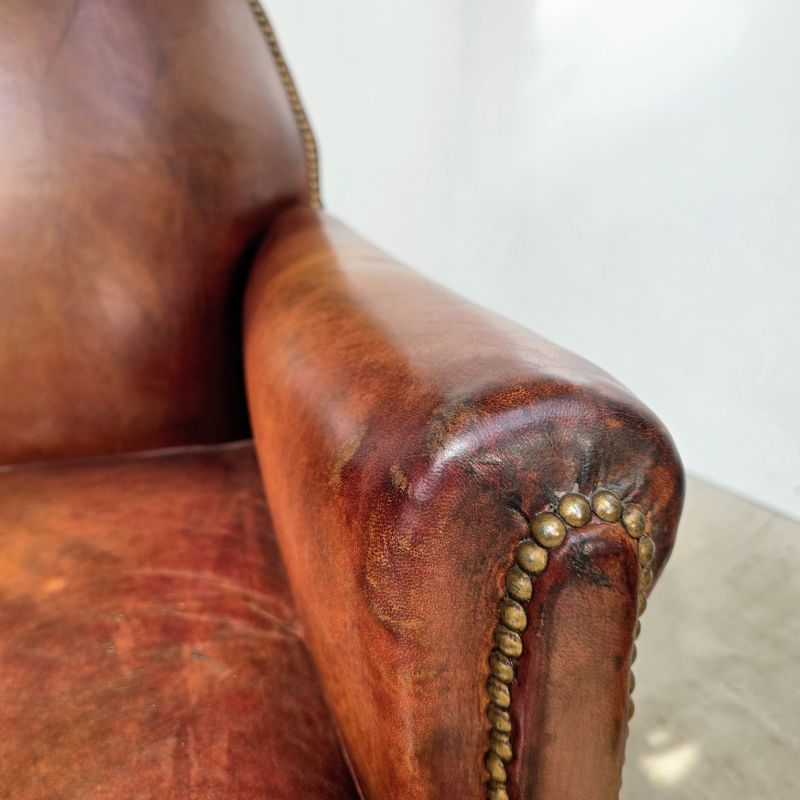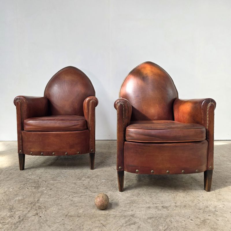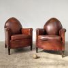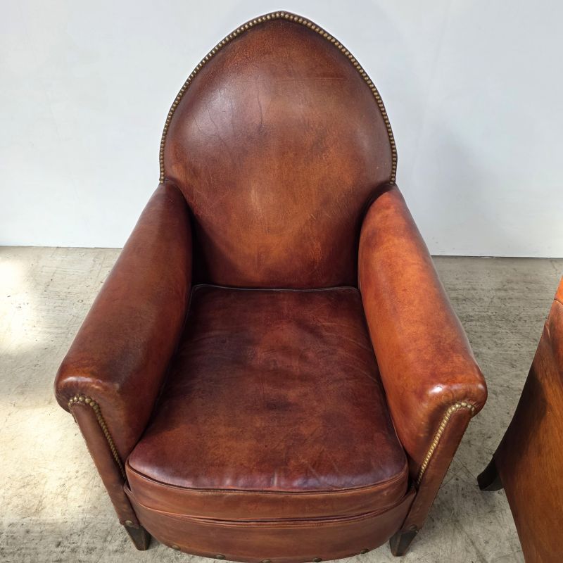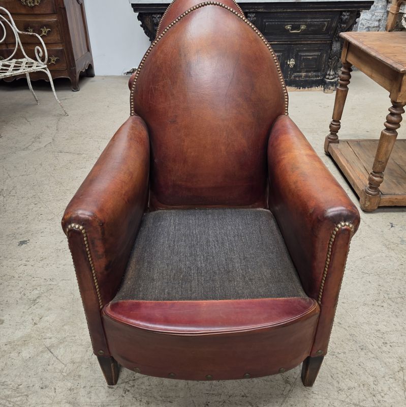Jolie paire de fauteuils de style gothique en cuir, début 20ème