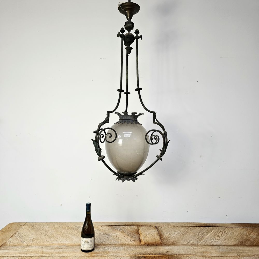 Grande lanterne de hall d’époque Napoléon III en bronze et opaline