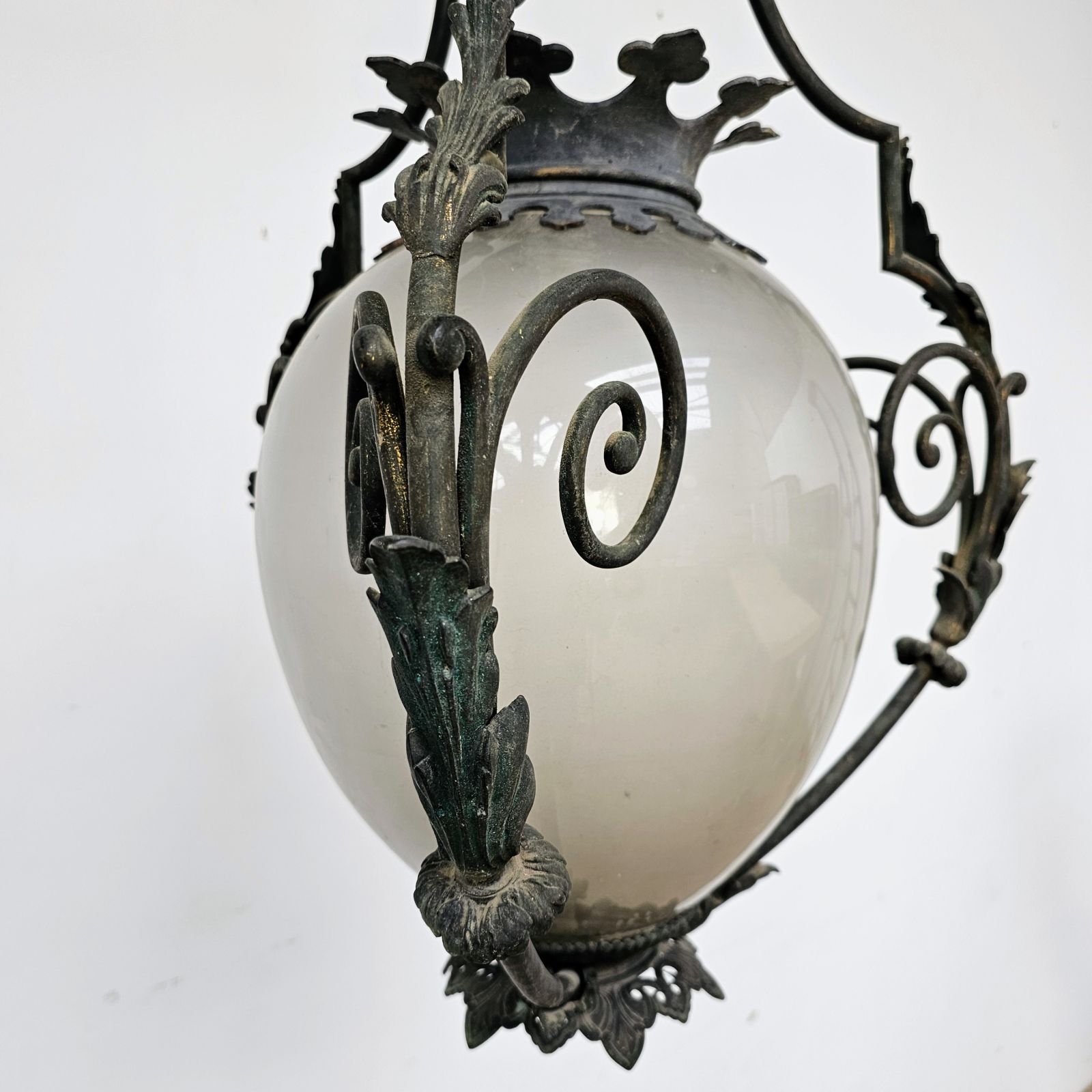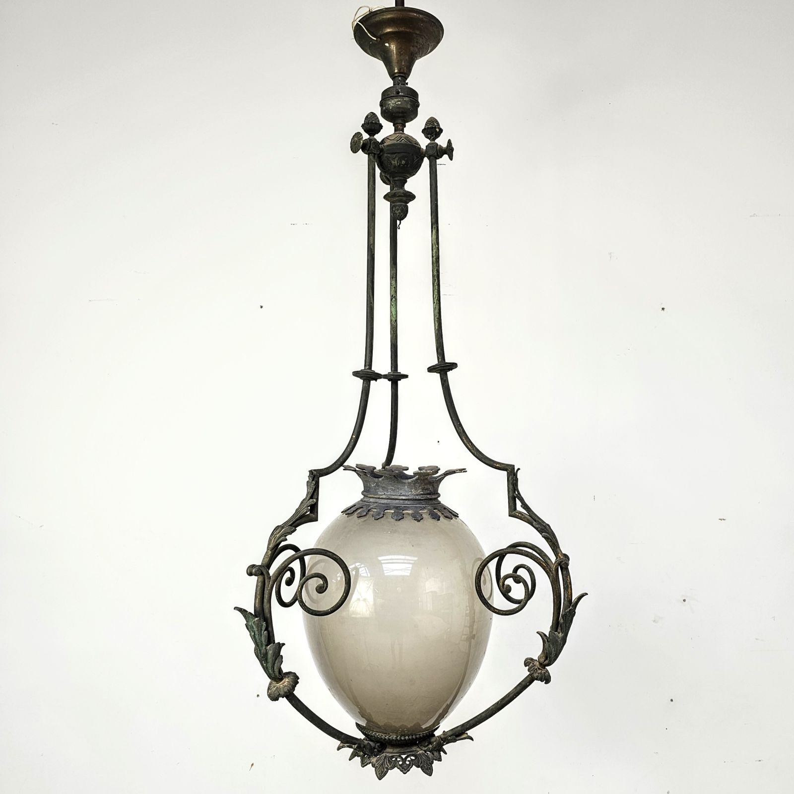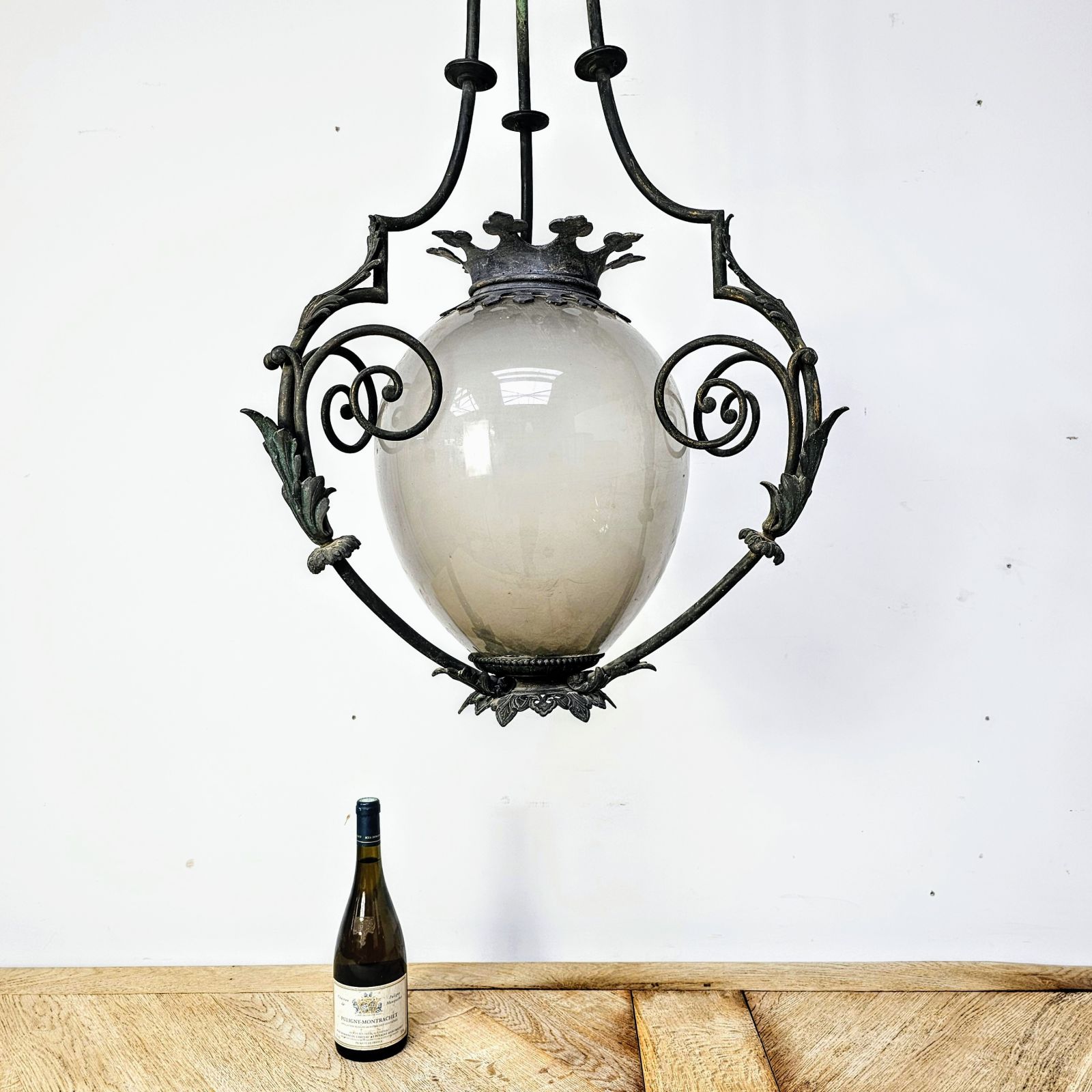 Grande lanterne de hall d’époque Napoléon III en bronze et opaline