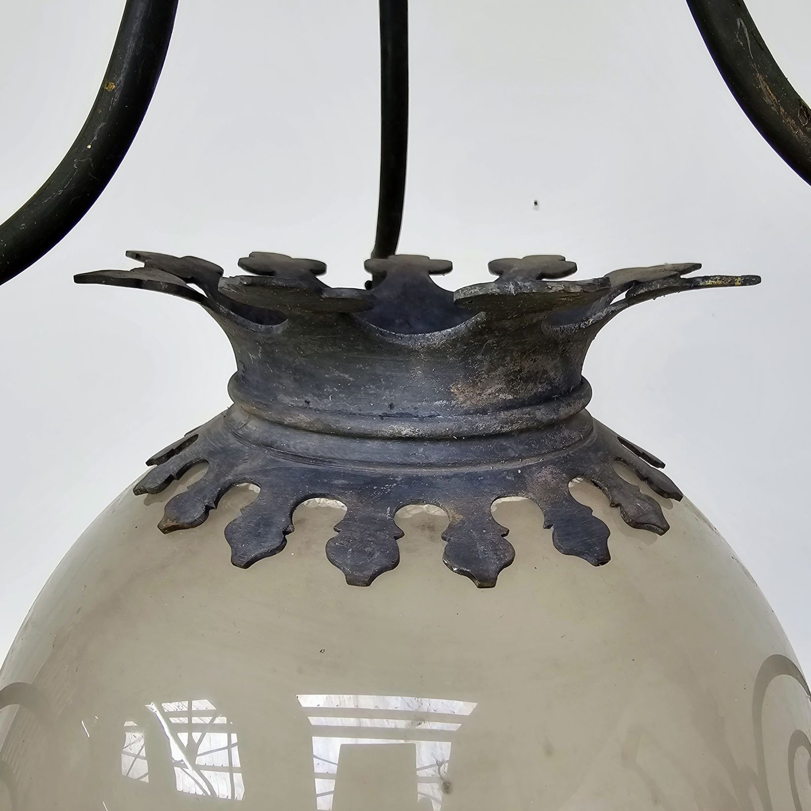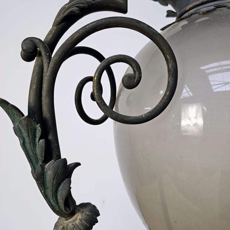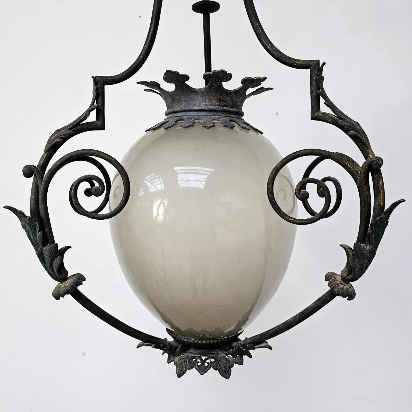 Grande lanterne de hall d’époque Napoléon III en bronze et opaline